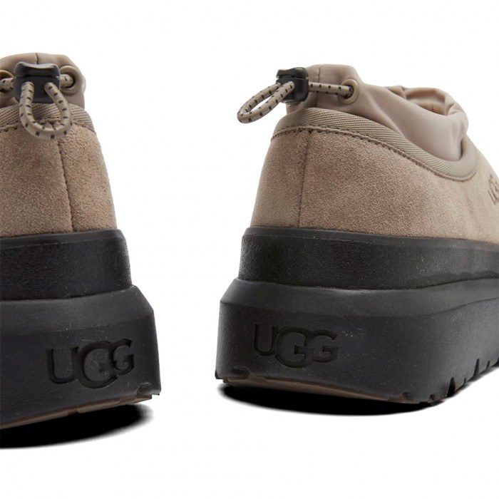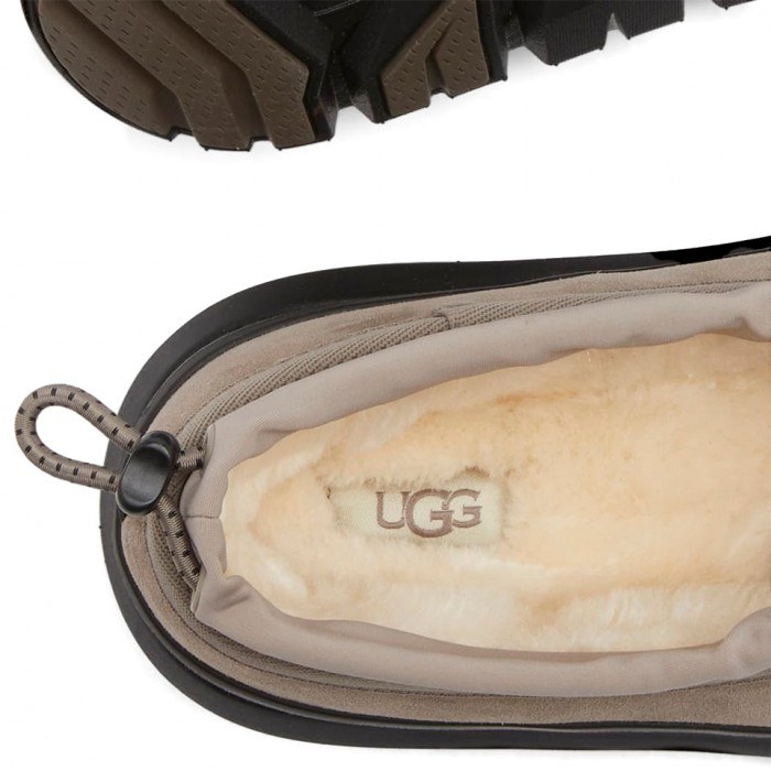 Главная особенность — водоотталкивающий верх из плотного замша и нейлоновых вставок, защищённый инновационной пропиткой UGG Weather Protect. Обувь легко чистится, не впитывает влагу и сохраняет идеальный внешний вид даже при частом ношении.