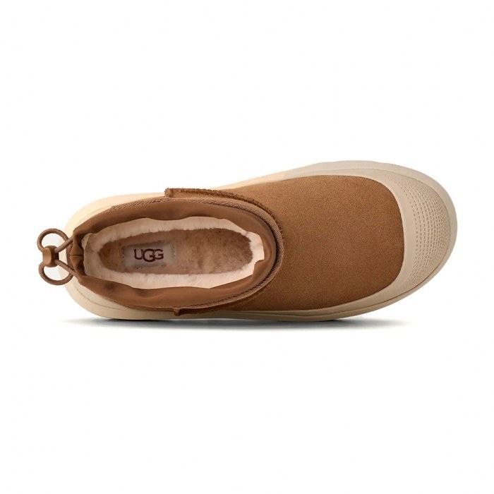 Верх выполнен из прочного замша, обработанного фирменной водоотталкивающей пропиткой Weather Protect, которая предотвращает впитывание влаги и защищает обувь от пятен. Это позволяет носить UGG Ultra Mini Hybrid даже в дождливые и снежные дни, не беспокоясь о внешнем виде.