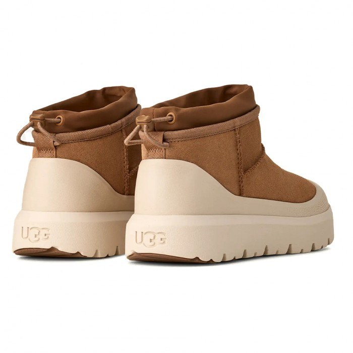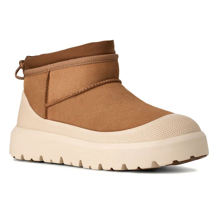 Модель UGG Ultra Mini Weather Hybrid Chestnut / Whitecap — это обновлённая и усовершенствованная версия культовых уггов, созданная для активной жизни в любую погоду. Она сочетает минималистичный дизайн, узнаваемый силуэт и инновационные технологии защиты от влаги и холода.